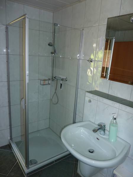 Das großzügige Bad wurde in diesem Jahr mit einer hygienische Glasdusche und flachem Einstieg ausgestattet.