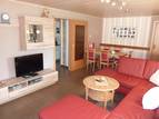 Es befindet sich dort auch eine großzügige Essecke,mit großem Esstisch und 5 Stühlen, mit separater Beleuchtung. In der Schrankwand finden Sie diverse Trinkgläser, Bücher und auch Gesellschaftsspiele.Weiterhin ist eine große gemütliche Ledercouch im Wohnzimmer.